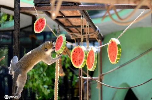 你知道吗,小动物们吃瓜果的时候,还会上演一场场“瓜果大战”呢!比如,一群小猴子在争夺一个巨大的西瓜,它们你争我抢,场面热闹非凡。有时候,小猴子还会用尾巴勾住西瓜,用力一拉,将西瓜从树上拽下来,然后大家争相品尝。